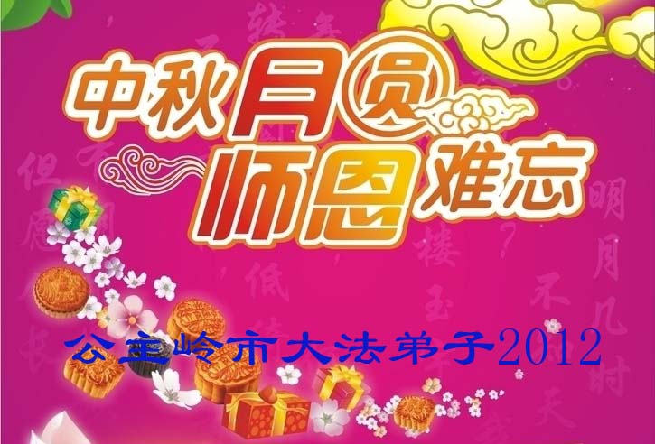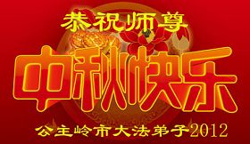 请师尊放心,我们一定努力做好三件事。 农历:二零一二年八月十二日。 吉林省四平市公主岭市大法弟子恭祝师尊中秋节快乐!