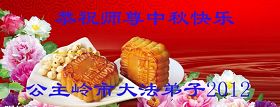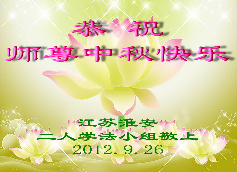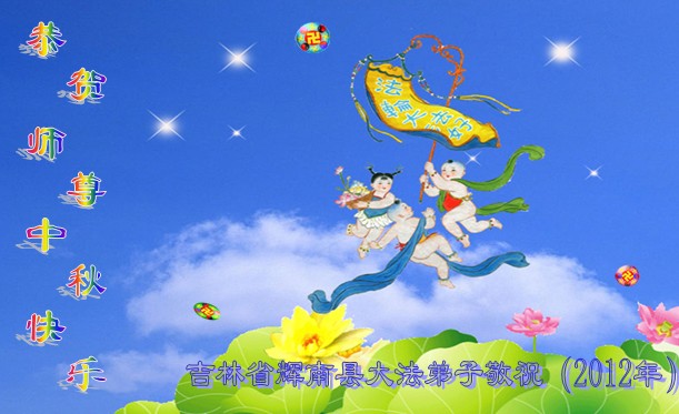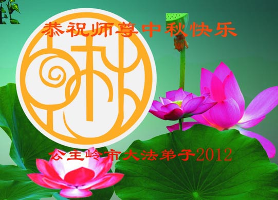 【明慧网二零一二年九月三十日】值此中秋佳节之际,中国大陆和海外的大法弟子纷纷寄来贺卡贺词,恭祝慈悲伟大的师尊中秋快乐,感谢师尊的慈悲救度。以下是部分大陆大法弟子的贺卡和贺词。 吉林省四平市公主岭市大法弟子恭祝师尊中秋节快乐!