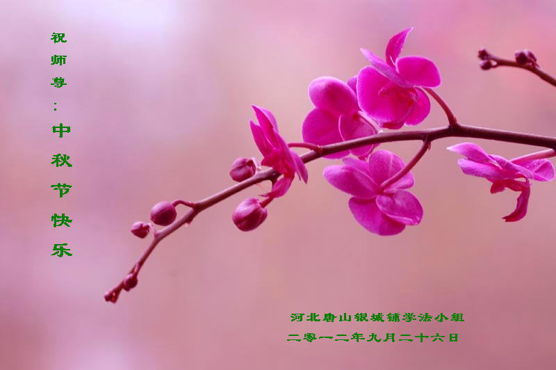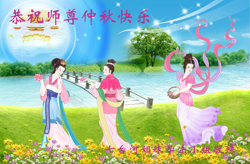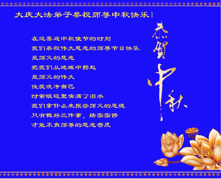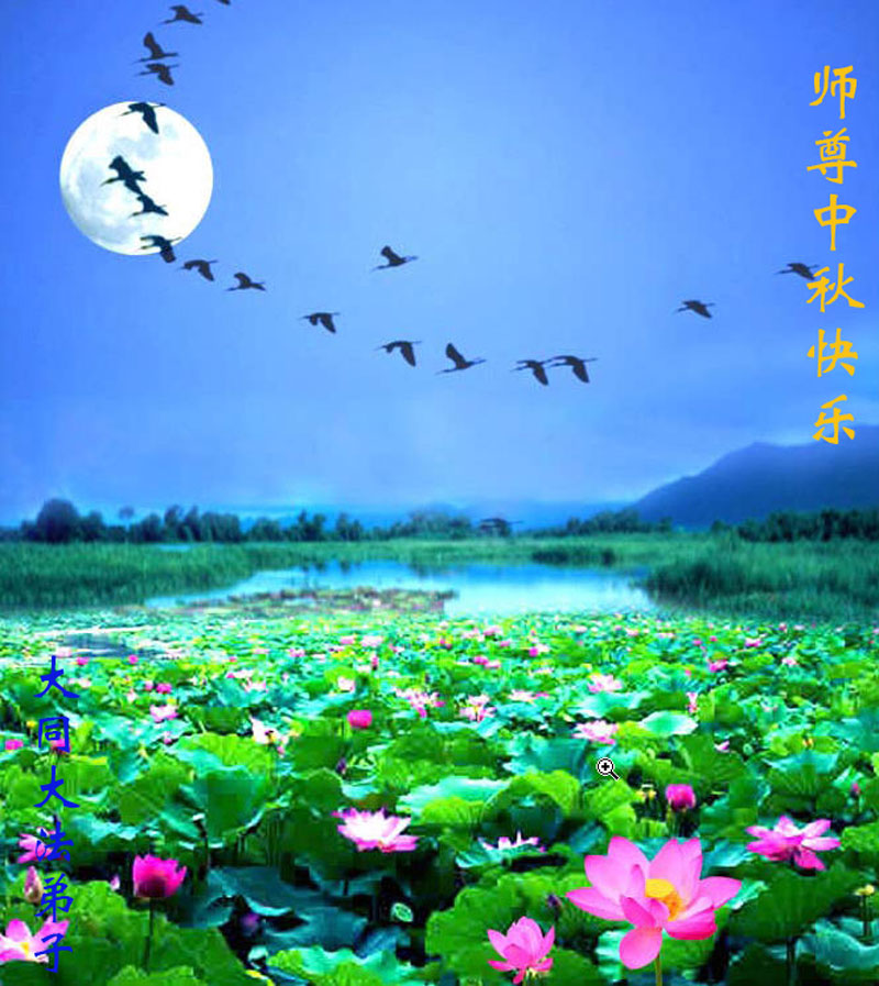 伟大的师尊中秋节好!我们一定尽自己最大能力做好三件事,把大法真相传到各家各户,兑现自己当初助师正法的承诺。 四川省成都大法弟子恭祝师尊中秋节快乐!