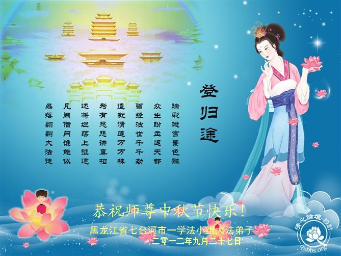 黑龙江省齐齐哈尔大法弟子恭祝慈悲伟大的师尊中秋节快乐!