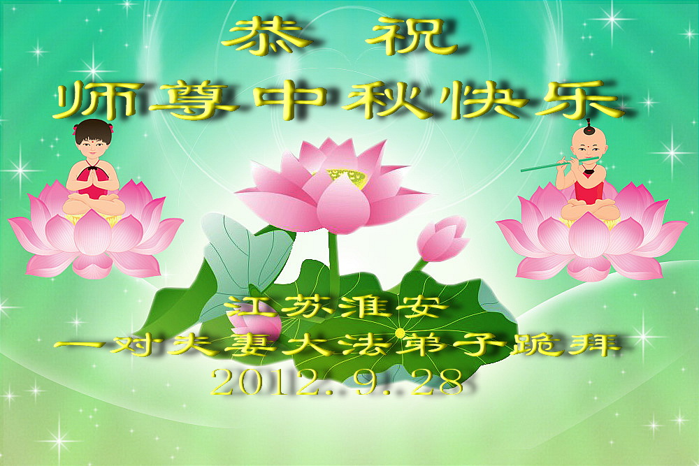 江苏淮安一对夫妻大法弟子恭祝慈悲伟大的师尊中秋快乐!感谢师尊救度之恩!