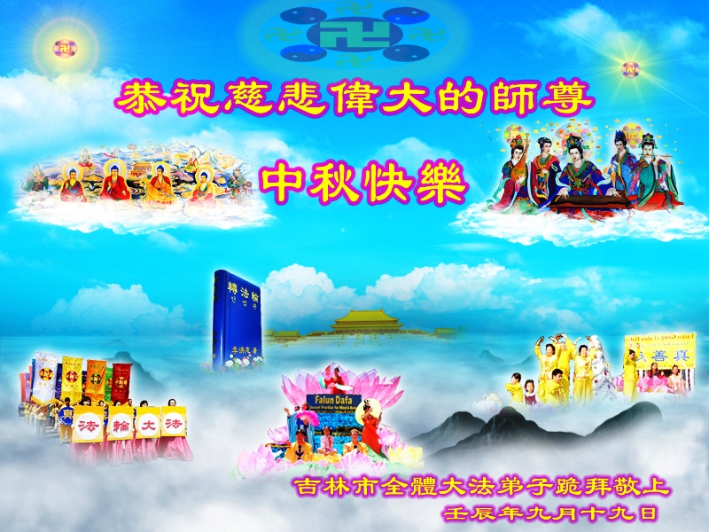 吉林市全体大法弟子恭祝慈悲伟大的师尊中秋快乐!