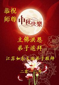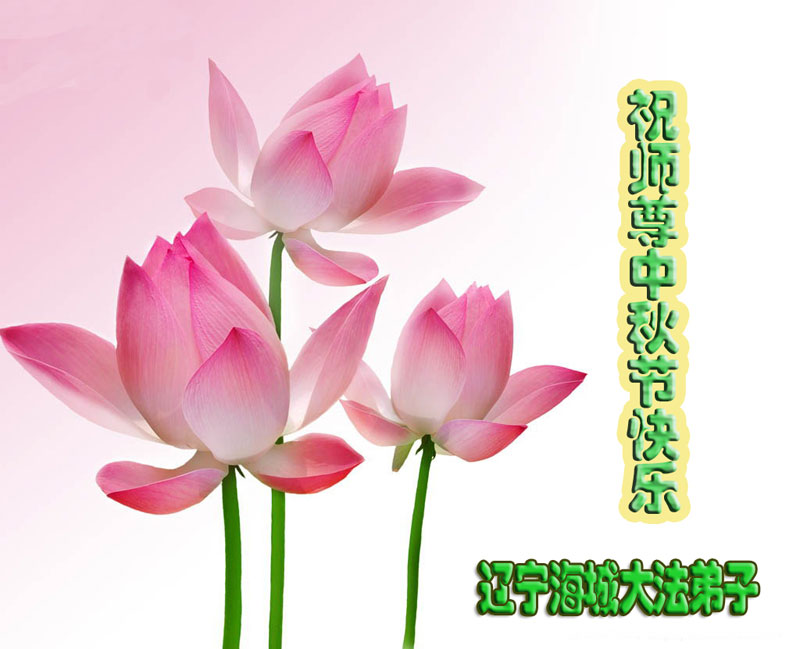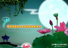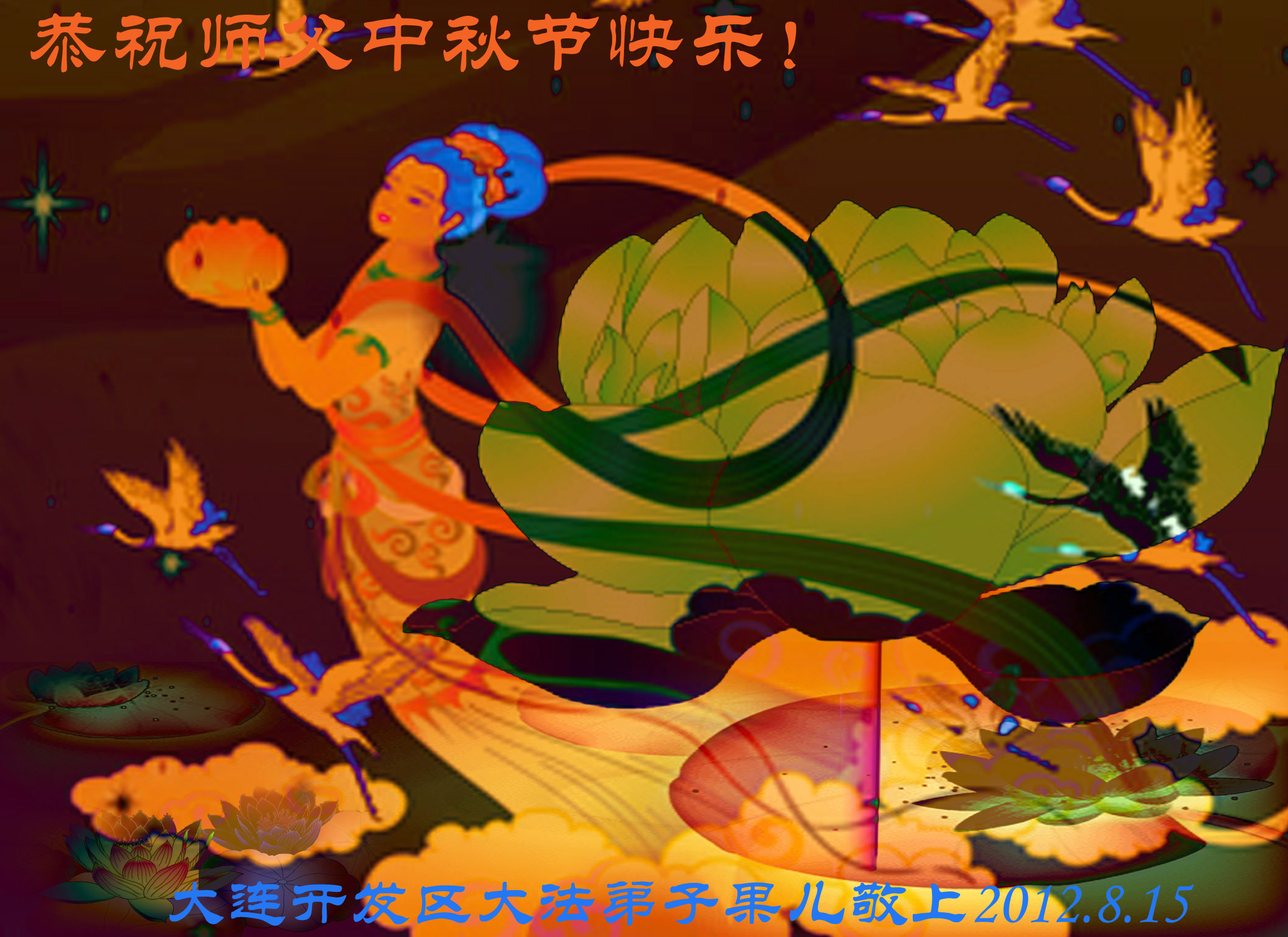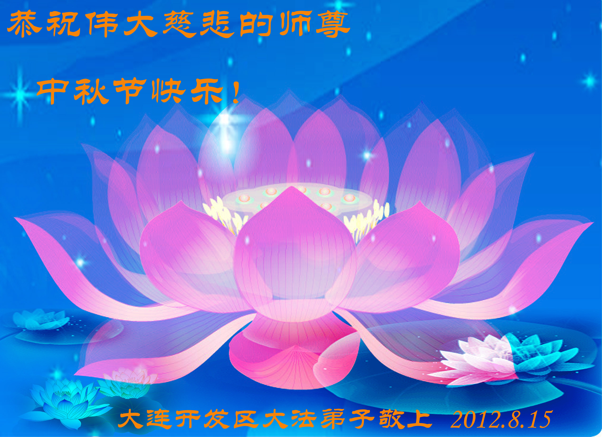 一年一度的中节就要到了,此时此刻我们十分想念伟大慈悲的师父。我们一定按照师父的要求做,越到最后越精進,救度更多的众生,一定要跟师父回家,让师父多一份欣慰少一份操劳。 向师父双手合十! 黑龙江省大庆市开发区一学法小组 二零一二年九月二十一日 辽宁省大连大法弟子恭祝师父中秋节快乐!
