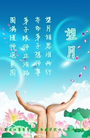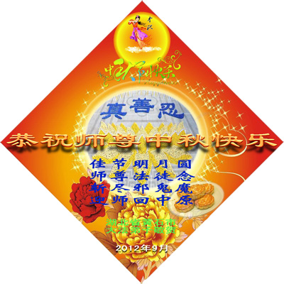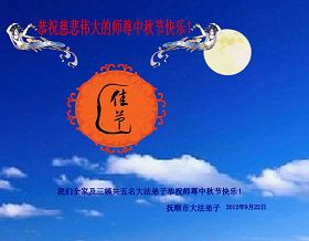 念师恩 每逢佳节倍思亲 月圆之时念师尊 三件事情均做好 完成誓约随师归 2012年09月22日 山东省烟台市莱阳市全体大法弟子恭祝慈悲伟大的师尊中秋快乐!