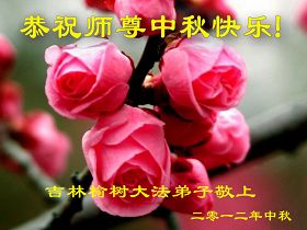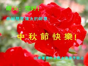一年又一年,弟子在师父的呵护下,随师正法,救度世人,请师父放心,善良的世人会得救的,弟子会听师父的话,走好师父安排的修炼路。 再次祝师父中秋节快乐! 愿师父天天看到弟子的提高!愿更多的世人能得救! 弟子一家敬祝 二零一二年九月十八日 黑龙江省黑河市北安市一大法弟子向师尊问候!