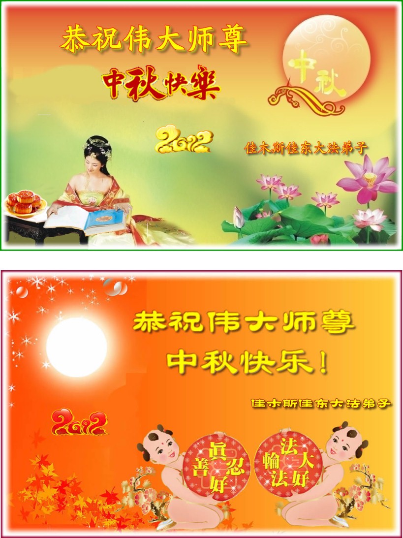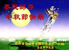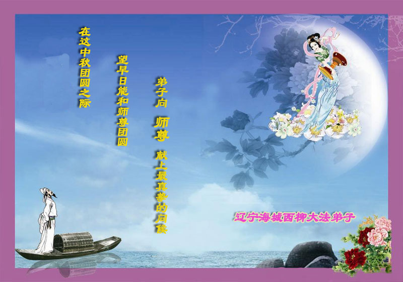 【明慧网二零一二年九月三十日】值此中秋佳节之际,中国大陆和海外的大法弟子纷纷寄来贺卡贺词,恭祝慈悲伟大的师尊中秋快乐,感谢师尊的慈悲救度。以下是部分大陆大法弟子的贺卡和贺词。 辽宁省抚顺地区全体大法弟子恭祝慈悲伟大的师尊中秋节快乐!