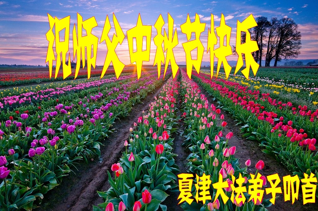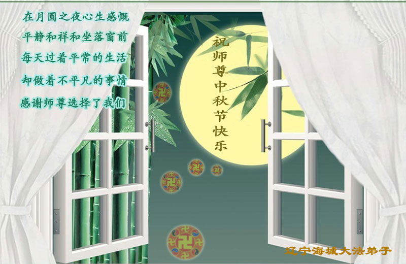 谨代表辽宁海城和西柳大法弟子恭祝伟大师尊中秋节快乐!弟子决心在最后的有限时间里做得更好,不负师尊的慈悲救度,放下自我与更多的同修配合好,救度更多的可贵众生。千言万语说不尽对师尊的无限感恩,只有恭敬谦卑的做好师尊要求的三件事,精進实修,理智、清醒、坚定、慈悲的走正走好最后的路。 江苏大法弟子恭祝师尊中秋节快乐!