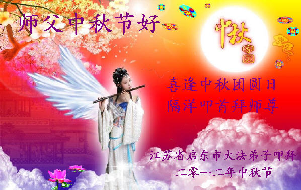 在中秋佳节来临之际,恭祝伟大的师尊节日快乐! 双鸭山矿区大法弟子 2012年9月22日 江苏南通大法弟子向师父中秋问好!