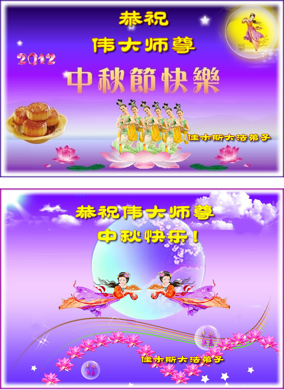我们一定紧随师父,用心做好,回报师恩。想念师父,盼望早日见师父。 上海大法弟子敬上 2012年9月21日 夏津大法弟子祝师尊中秋节快乐!