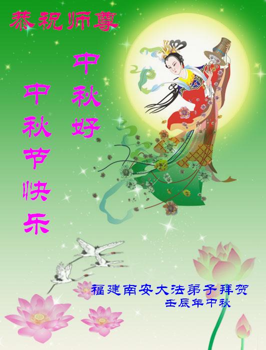 尊敬的师尊您好:您辛苦了。祝师尊中秋节快乐! 合十 跪拜师尊 2012年9月18日 山东省威海市荣成市夫妻大法弟子祝师尊中秋节愉快!