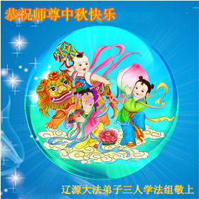 吉林省辽源市大法弟子三人学法组恭祝慈悲伟大师尊中秋节快乐! 弟子们感谢师父的慈悲呵护,修好自身,多救众生,兑现誓约,随师把家还。