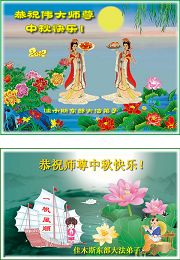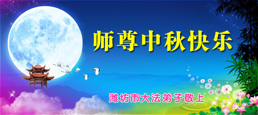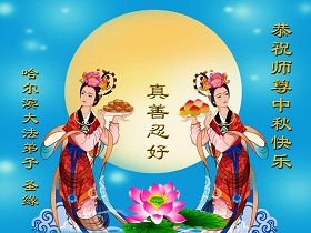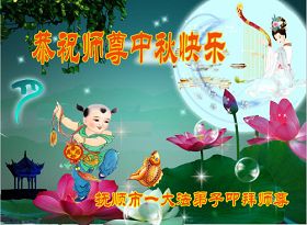 山东威海大法弟子恭祝慈悲伟大的师尊中秋节快乐!我们一定要做好三件事,精進再精進,兑现自己的史前大愿。 辽宁省新宾大法弟子恭祝师父中秋节快乐!随师还 中秋时节忆师恩 法像面前鞠躬深 奉日敬仰献师父 泪如泉涌心如潮 三件大事力做好 同化大法是大道 待到法正人世间 功成圆满随师还 我们矿区学法小组全体大法弟子恭祝师尊中秋节快乐!师尊您好!弟子们谨记师尊教诲,修好自己快救人,不辜负师尊的慈悲救度,愿师尊少一份操劳,多一份欣慰。只盼早日与师尊相见。 吉林市某学法小组全体大法弟子恭祝师尊中秋节快乐!迎团圆 中秋月圆人未圆, 法徒受害十三年。 冰消日暖雾渐散, 中共解体在眼前。 救众法船渐靠岸, 全球掀起大审判。 万古圣缘慈悲泪, 喜迎师徒大团圆。 吉林市某学法小组全体大法弟子叩拜师尊 辽宁省丹东大法弟子恭祝慈悲伟大的师尊中秋节快乐! 山东东平大法小弟子恭祝师父中秋节快乐!弟子无限的感恩师父,无限的想念师父。弟子不知何时能够见到师父,弟子好久以来都在羡慕国外的大法小弟子,特别是美国的大法弟子都能够幸运的见到师父,他们是多么幸福啊。弟子每每想念师父的时候,总是不停的念:法轮大法好真善忍好。弟子总感觉师父就在慈悲的看着弟子,弟子心里暖暖的,通透全身的美妙祥和,弟子泪流满面。弟子请师父放心,弟子一定多学法学好法,把大法的美好讲给世人,不负师父慈悲苦度。跪拜师父!合十! 湖北省黄冈市武穴市大法弟子敬祝师尊中秋佳节快乐!中秋佳节感恩师尊 我常常闭门静心诵真经 我常常感恩师尊泪淋淋 我真想穿越大洋西方去 享受在师尊膝前听叮咛 我也想香港景点去打坐 我也想美国华府会同门 因为那里没有迫害 在那里我不会生出怕心 自从九九年“七二零” 恶党邪风起 大陆失去了修炼的好环境 魔难中大法弟子识正邪 修炼的道路越走越坚定 师尊救世度人多么辛苦 敬请师尊一路多多保重 待那邪*党-邪灵一朝散去 普天同庆迎师尊