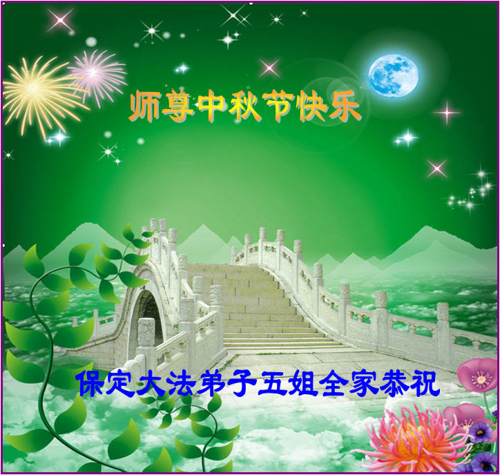 河北保定大法弟子五姐全家恭祝师尊中秋节快乐!感谢师尊保护我闯过迫害,在此表达我全家对师尊深深的感恩。