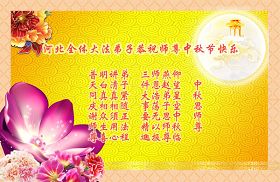 伟大慈悲的师尊好:中秋节到了,弟子向师尊致以节日的祝贺,祝师尊多些欣慰,少一些操劳。 山东大法弟子 天津西青区、河西区、南开区部份大法弟子恭祝师尊中秋节快乐!