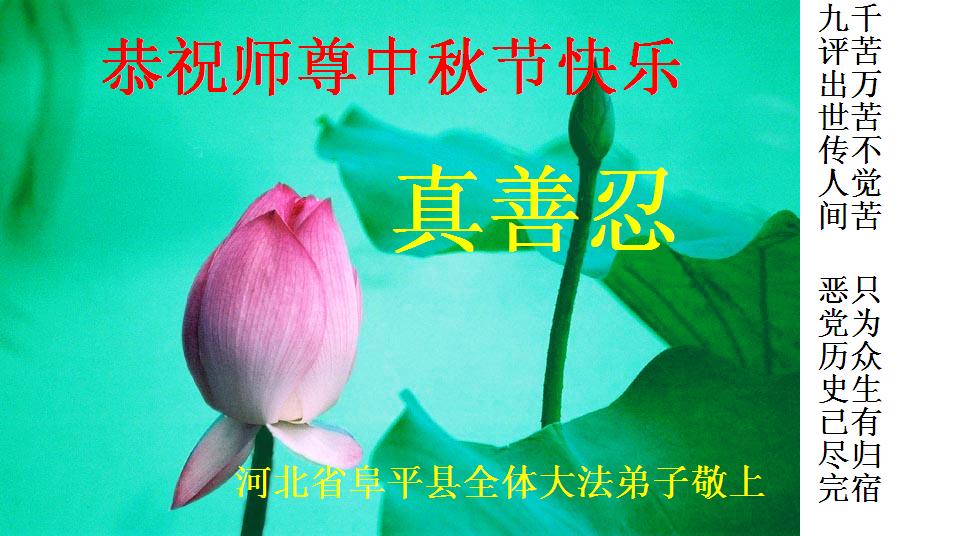中秋思师尊 仰望星空中秋临 燕赵弟子思师尊 师恩浩荡无以报 三件大事要精進 弟子紧随正法程 讲清真相须用心 明白真相众生喜 普天同庆谢师尊 河北省保定市阜平县全体大法弟子恭祝师尊中秋节好!