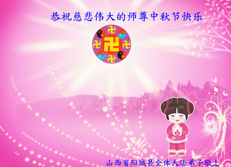 谢谢师尊的慈悲救度,师尊辛苦了。我们一定更精進的实修,做好三件事,请师尊放心。 山西省晋城市阳城县大法弟子恭祝慈悲伟大的师尊中秋节快乐!