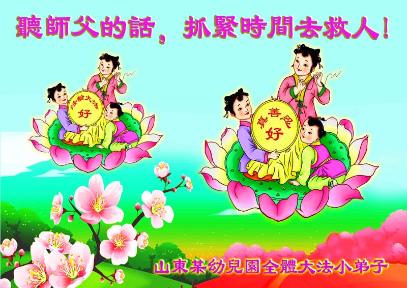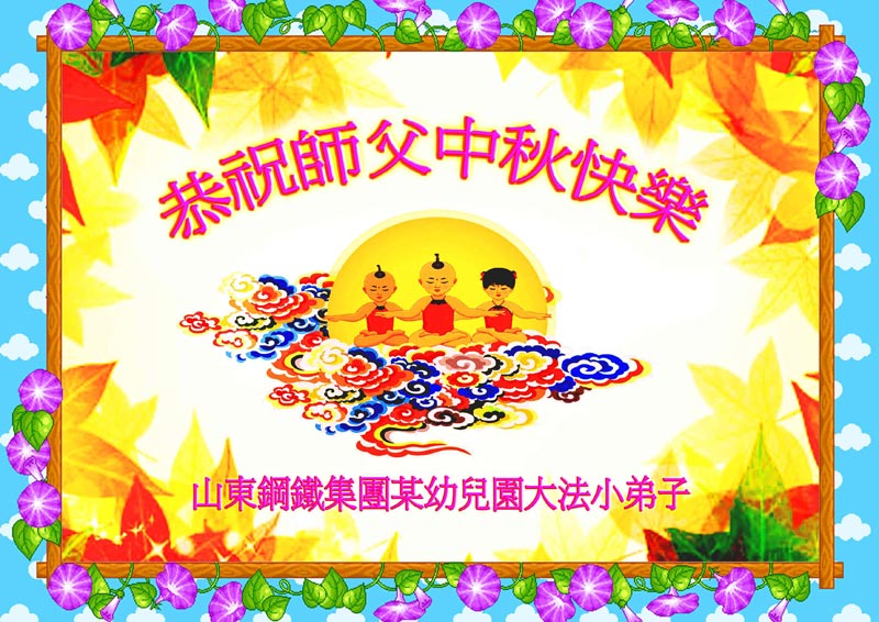 感恩师尊对弟子的慈悲呵护,感恩师尊时时刻刻看护着弟子!学好大法是最根本的保障,只有学好了法,才能修去不符合大法的因素,心性才能得到提高,同时才能在大法中回归,向先天本源不断的升华,运用大法赋予的各种神通法力清除邪恶,救度众生,才对得起师尊对弟子的苦度,才能在大法中勇猛精進直至圆满,跟师尊回家。跪拜师尊!合十! 山东某地幼儿园全体大法小弟子恭祝师尊中秋快乐!