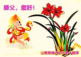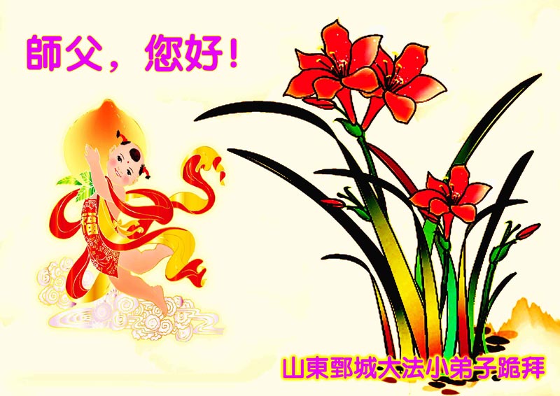 师父您好,弟子非常想念您!弟子今后一定多学法提高自己的心性,改掉一切坏毛病,做一个合格的大法小弟子,不让师父失望。跪拜师父!合十! 山东沾化大法小弟子恭祝师父中秋快乐!