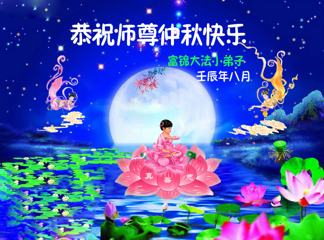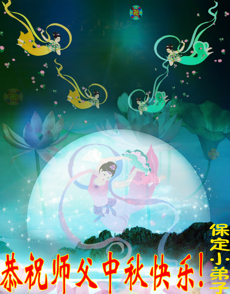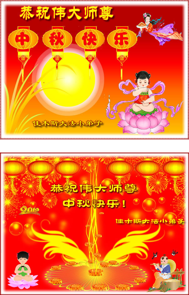 北京丰台区一对姐妹大法弟子及一大法小弟子敬上 广东省江门大法小弟子雯雯恭祝师父中秋节快乐!