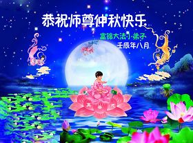 中国大陆大法弟子及小弟子祝师父中秋节快乐!