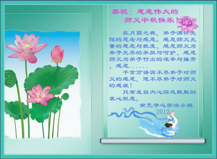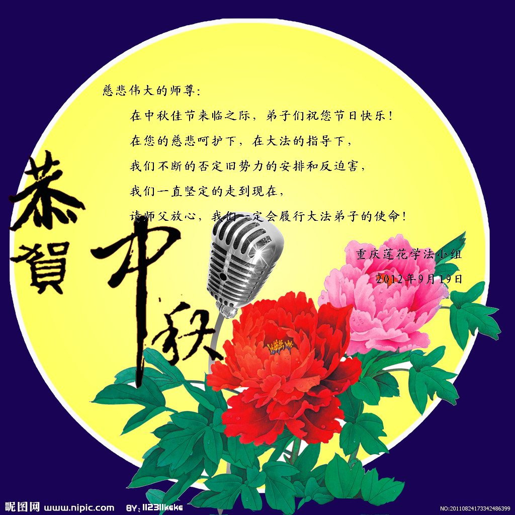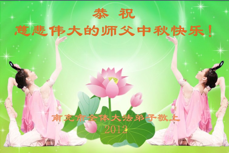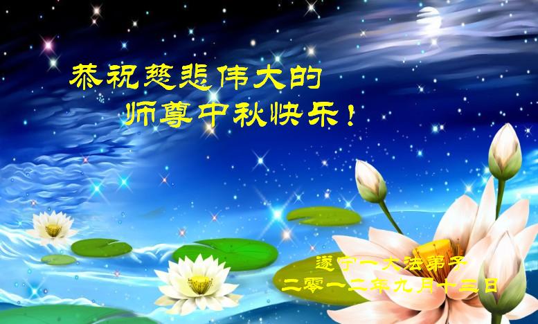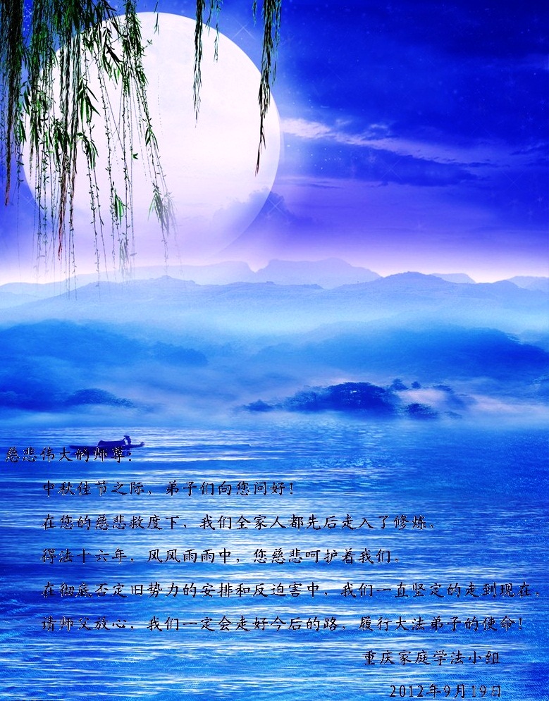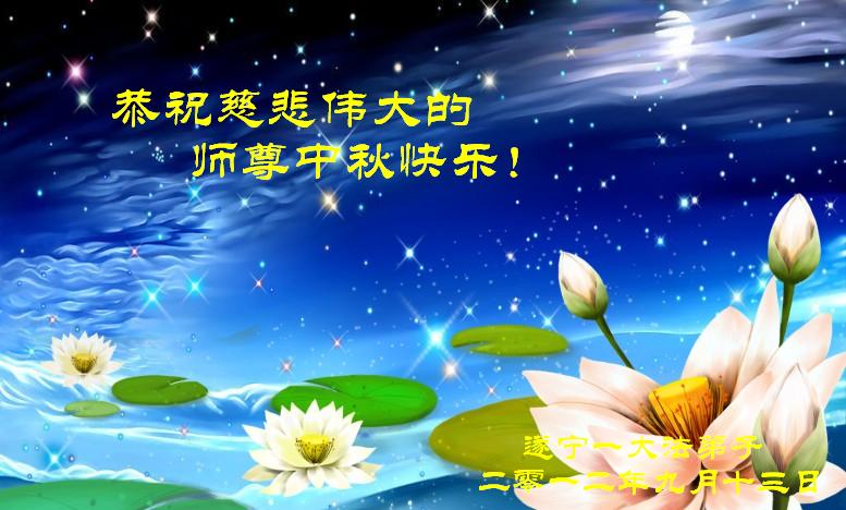 恭祝慈悲伟大的师尊中秋快乐! 贵阳市一老年学法小组 2012.9.18。 四川遂宁市城北大法弟子恭祝师尊中秋快乐!