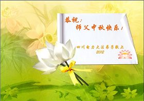 【明慧网二零一二年九月三十日】自二零零三年开始,中国大陆和海外的大法弟子纷纷在中秋佳节之际,将发自内心的节日贺词、自制的贺卡、诗歌等寄给明慧网,恭贺慈悲伟大的李洪志师尊中秋快乐。以下为来自西南地区大法弟子的贺词、贺卡。 四川省遂宁一大法弟子恭祝慈悲伟大的师尊中秋快乐!