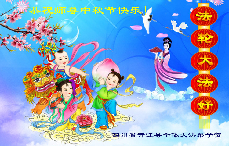 四川开江一女大法弟子和全家人敬祝师父中秋佳节快乐!