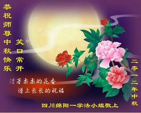 师尊您好!师尊辛苦了!四川绵阳市全体大法弟子向师父问好!恭祝师父中秋节快乐! 四川内江大法弟子恭祝慈悲伟大的师尊中秋愉快!
