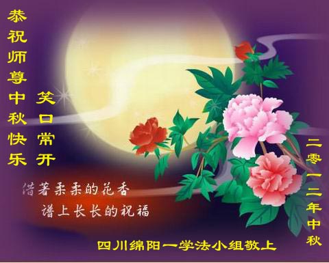 四川省宣汉县大法弟子遥祝慈悲伟大的师尊二零一二年中秋节快乐!师尊辛苦了! 中秋佳节月圆夜,家家户户喜团圆,执饼望月念师尊,他乡救劫还未停,师尊您辛苦了!宣汉县大法弟子非常想念师尊! 我们深知见到师尊的日子已经不远了,我们会更加精進,抓紧时间做好三件事,兑现自己的史前誓约。期待喜迎师尊回到故乡这一天早日来临! 四川绵阳全体大法弟子恭祝师尊中秋节快乐!