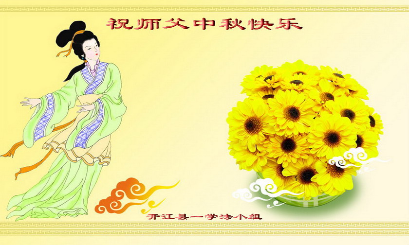 师父传大法,苦度众生辛苦了!我们遂宁市城北全体大法弟子向师尊致以亲切问候!恭祝师尊中秋快乐! 四川省达州市开江县一学法小组大法弟子恭祝师尊中秋快乐!