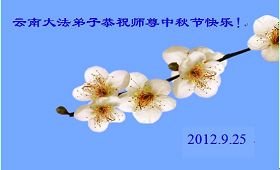 正法已经走到最后了,弟子一定不辜负师父的慈悲苦度,做好三件事。跟随师父圆满回家,感谢师父救度之恩。 2012-9-21 云南全体大法弟子恭祝师尊中秋快乐!