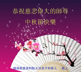 月到中秋分外明,每逢佳节倍思亲。伟大慈悲的恩师,弟子们想念您!祝恩师佳节快乐!弟子们一定做好该做的,随师把家还! 广东省深圳大法弟子敬祝伟大慈悲的师尊中秋节快乐!