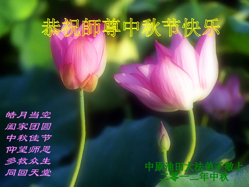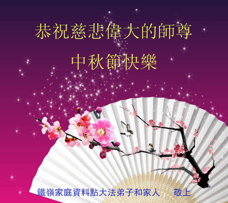 沈阳一家三口大法弟子:恭祝慈悲伟大的师尊中秋节快乐!弟子一定在最后时刻努力做好三件事,修好自己,助师正法。 江苏省镇江市丹阳市大法弟子恭祝师尊中秋节快乐!