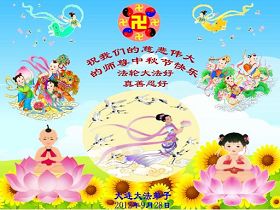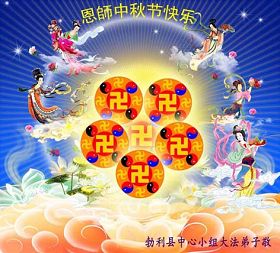 一年一度中秋佳节到了。越到最后,邪恶疯狂之势仍然猖狂。愿中秋肃杀下,秋风扫落叶,大法弟子,其中有我在内,做的更好些。使更多不明真相之人得救,世人有好的去向,普天祥和,师父展笑颜。 广东信宜大法弟子 夏历八月十三日 中原油田全体大法弟子恭祝师尊中秋愉快