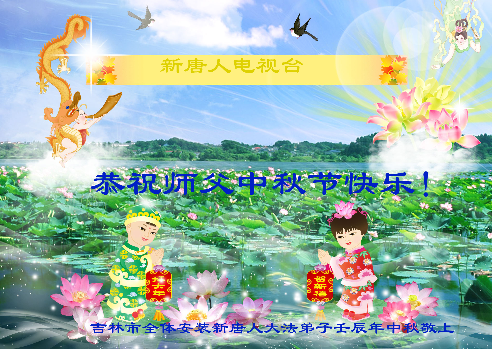 吉林市全体安装新!唐!人:电视台的大法弟子恭祝师父中秋快乐!