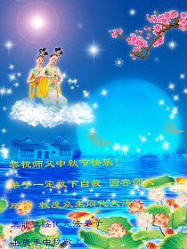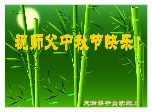 我们会牢记师尊的教诲,做好三件事,多救人,完成好自己当初的誓约。同时也愿所有同修都象师尊所希望的那样“中秋添正念”。合十 家乡大法弟子祝师父中秋快乐!