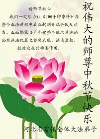 盼望早日见到师尊! 河北富镇全体大法弟子恭祝师尊中秋快乐!