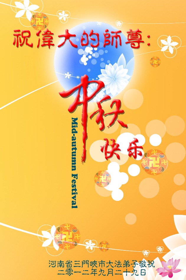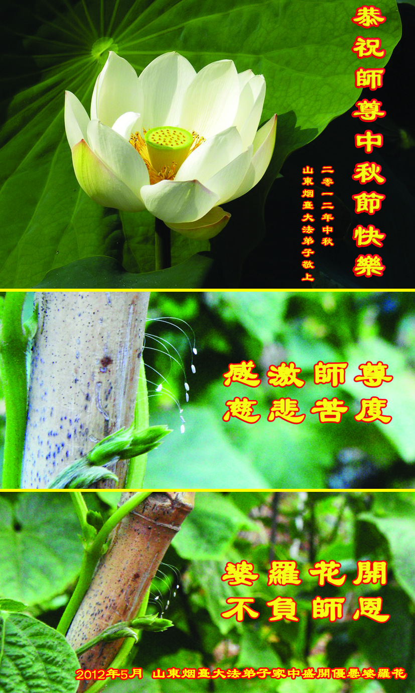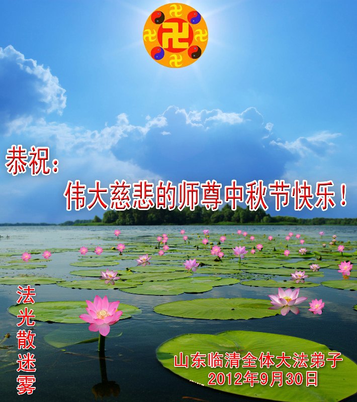 感谢师父慈悲救度,感谢师父佛恩浩荡,弟子们请师尊放心,大法弟子助师正法的心永不改变。 周口全体大法弟子叩拜 二零一二年九月三十日 山东大法弟子夫妻同修祝师尊中秋快乐!