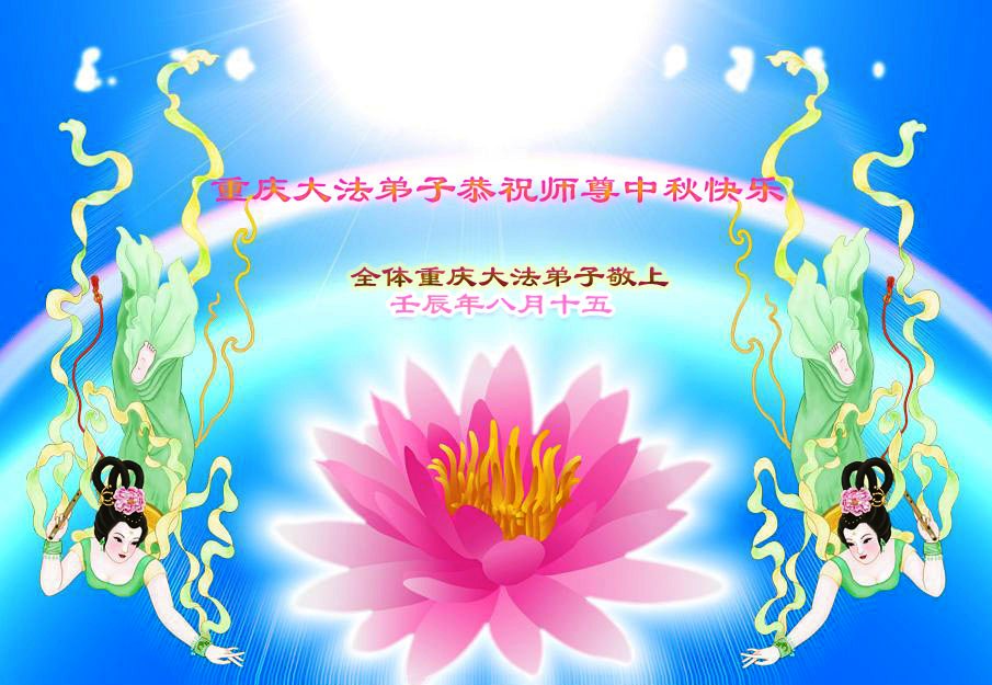 祝全世界大法弟子中秋节快乐!中国大陆大法弟子中秋节快乐!请师尊放心,我们一定精進实修,做好三件事,走好最后的路。 重庆市全体大法弟子恭祝师尊中秋快乐!师尊您辛苦了!