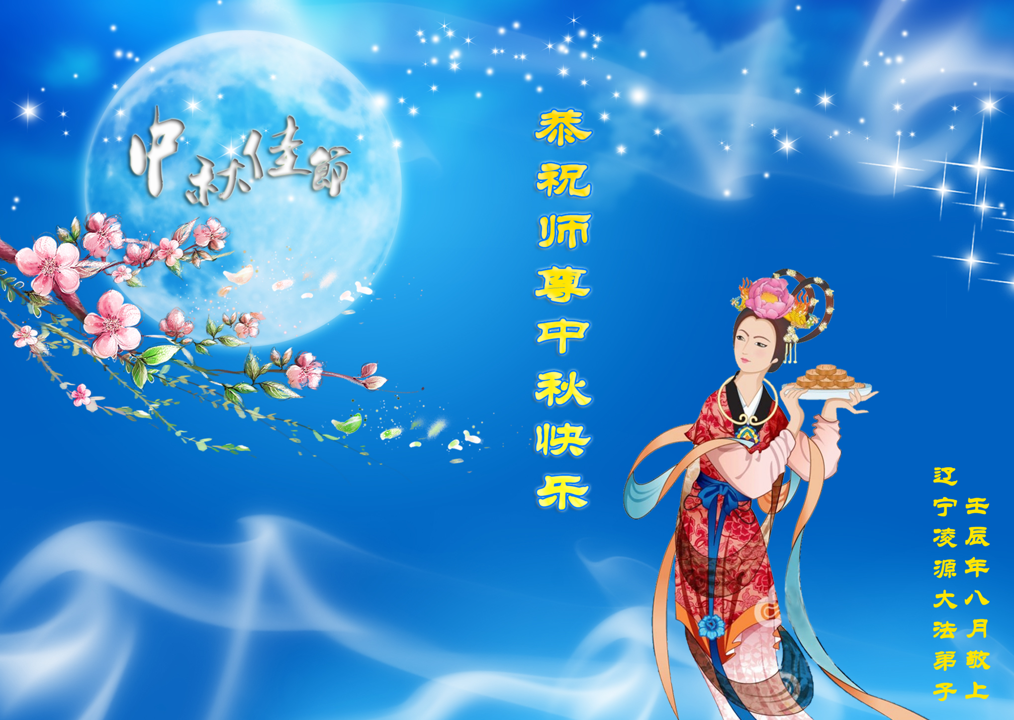 【明慧网二零一二年九月三十日】值此中秋佳节之际,中国大陆和海外的大法弟子纷纷寄来贺卡贺词,恭祝慈悲伟大的师尊中秋快乐,感谢师尊的慈悲救度。以下是部分大陆大法弟子的贺卡和贺词。 辽宁凌源大法弟子恭祝师尊中秋快乐!