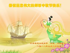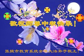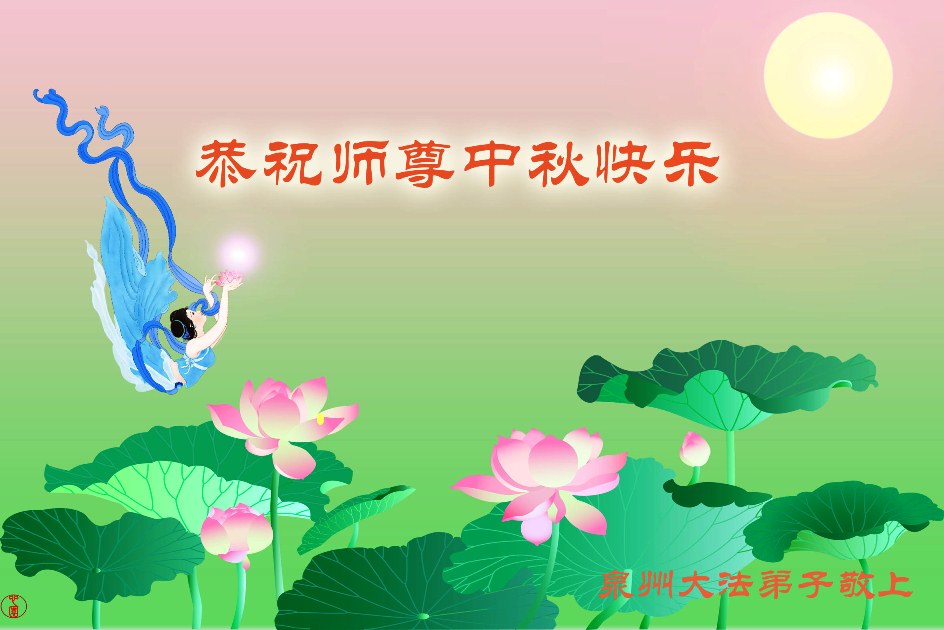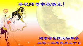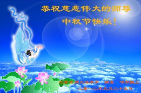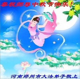 中国大陆河北省邯郸市成安县全体法轮大法弟子恭贺师尊中秋快乐。 我们有农民,有工人,有教师,有机关干部、职工,有生意人,我们都会遵照师尊的教诲,做好三件事,讲真相救度世人。值此中秋佳节,我们遥祝师尊节日快乐! 湖南岳阳大法弟子祝慈悲伟大的师尊中秋节快乐!