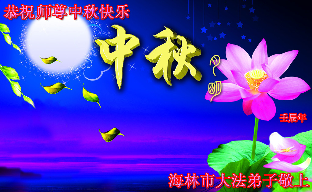 中秋佳节到,弟子祝师好,精進讲真相,抓紧救众生。 中秋佳节到,弟子祝师好,修去执著心,圆满随师还。 凤城大法弟子敬祝师尊中秋节快乐!