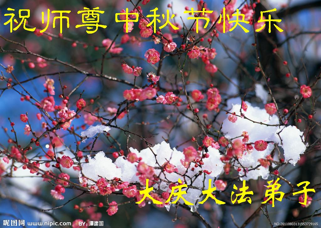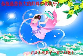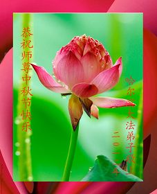 又值中秋团圆夜,皓月长圆望人圆。 风雨廿载不虚度,日精月進踏流年。 弟子长思曾愚过,只争余后不复返。 惟愿师尊时时笑,更待相随回宇寰。 值此中秋佳节,大法小弟子恭祝师尊节日快乐。并向师尊保证无论在什么环境下都坚持学法,尽自己最大的努力修去执着,坚定不移地走好以后的路。 大陆大法弟子祝愿师尊中秋快乐!唯愿师尊笑!