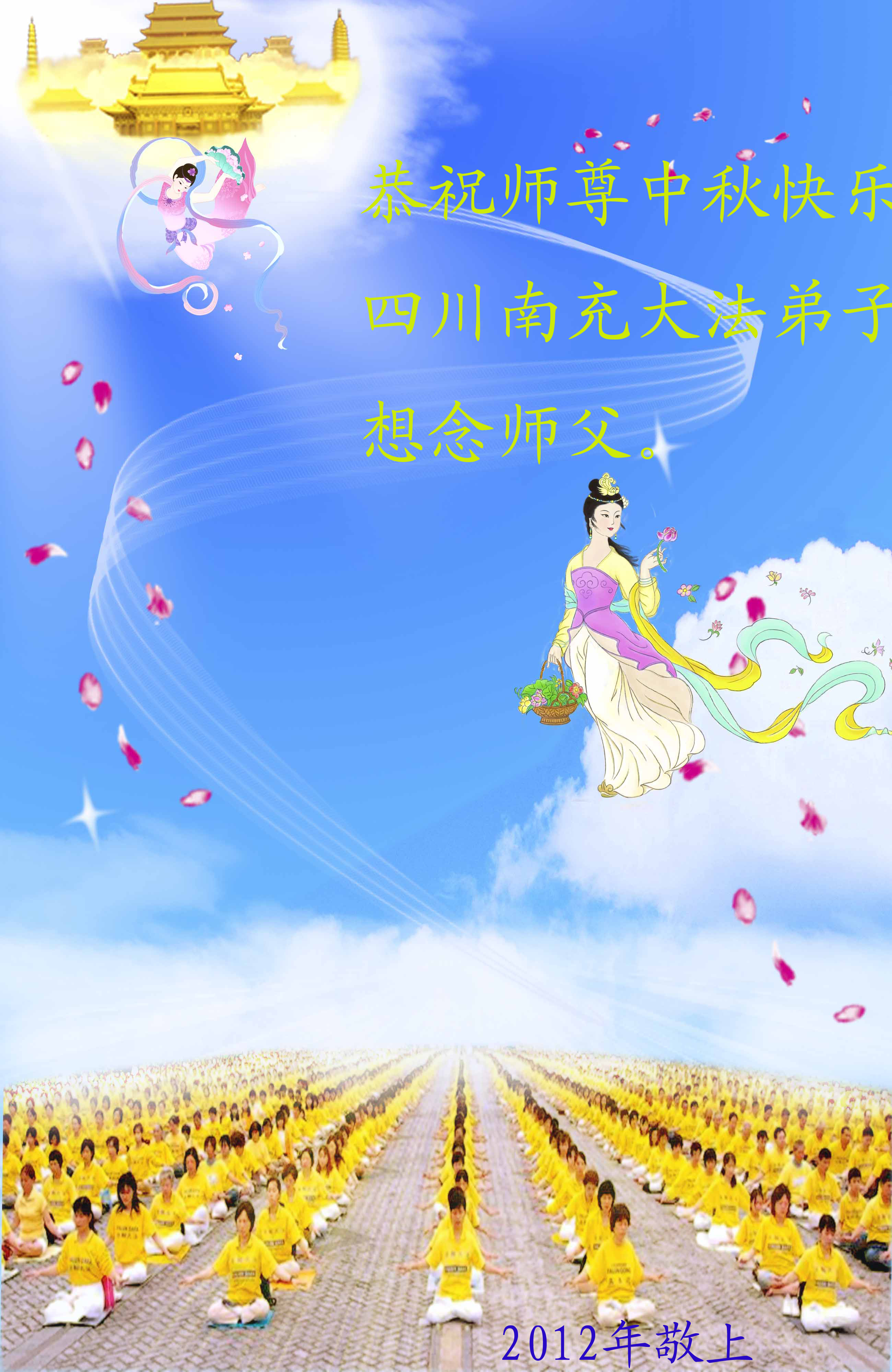 2012.9.29。 四川省宜宾市大法弟子恭祝师尊中秋佳节愉快,身体健康,师尊辛苦了!