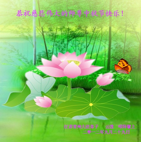 在师尊慈悲的呵护下,弟子走过了十四年的修炼路。用尽世上所有的语言也难诉弟子对师尊感激之情。弟子只有在心里千万遍的重复一句话:“师尊您辛苦了!谢谢师尊”! 请师尊放心,弟子会加倍努力,精進实修。以报师尊慈悲苦度。借此中秋月圆之际,弟子遥祝师尊中秋节快乐!师尊您辛苦了!谢谢师尊! 吉林省大法弟子 2012-9-29 恭祝师尊中秋快乐!