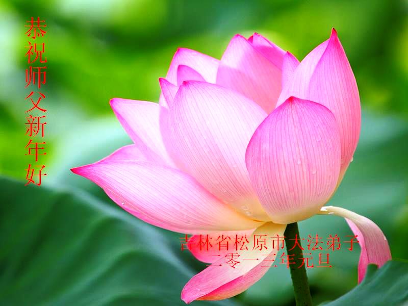 【明慧网二零一三年一月三日】新的一年到来之际,中国大陆大法弟子纷纷寄来贺卡贺词,恭祝慈悲伟大的师尊元旦快乐,感谢师尊的慈悲救度。吉林省松原市全体大法弟子恭祝师父新年好! 河北无极全体大法弟子祝贺慈悲伟大的师父元旦快乐!