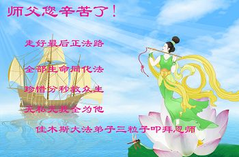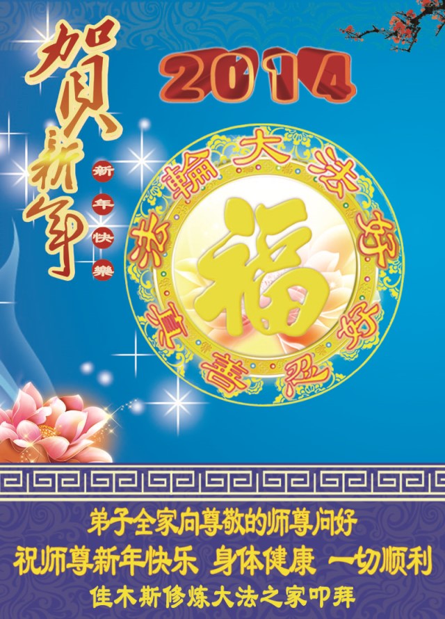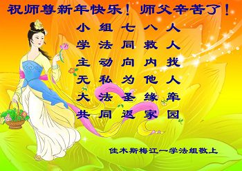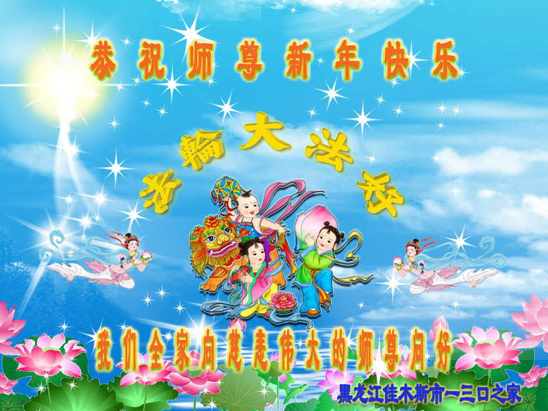 弟子及家人向师尊问好: 恭敬师尊新春吉祥,弟子不负师尊所望,一定坚定正念,精進圆满,紧随师尊把家还。 再次恭敬师尊万事如意! 黑龙江佳木斯大法弟子 黑龙江佳木斯大法弟子祝师尊新年快乐!