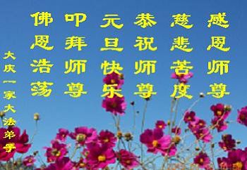 黑龙江省大庆市让胡路区大法弟子恭贺师父元旦快乐!