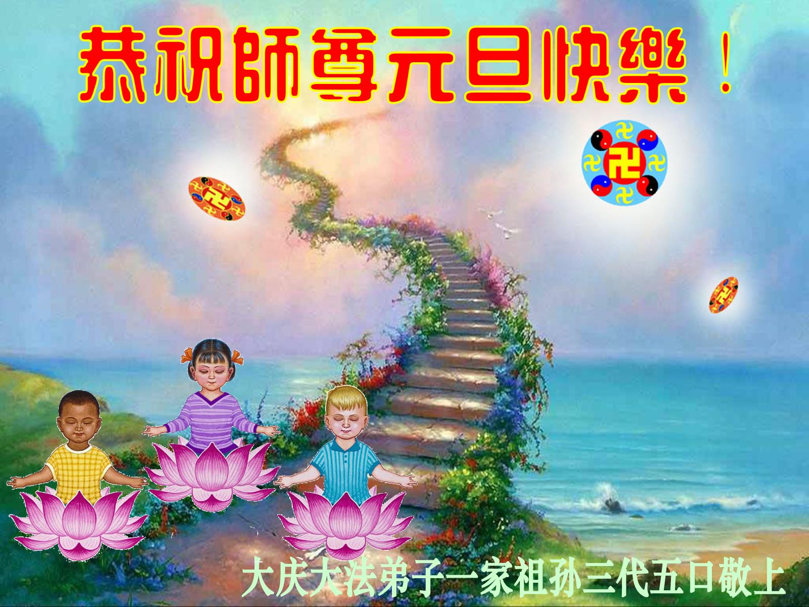 黑龙江省大庆一家大法弟子恭祝慈悲伟大的师尊元旦快乐