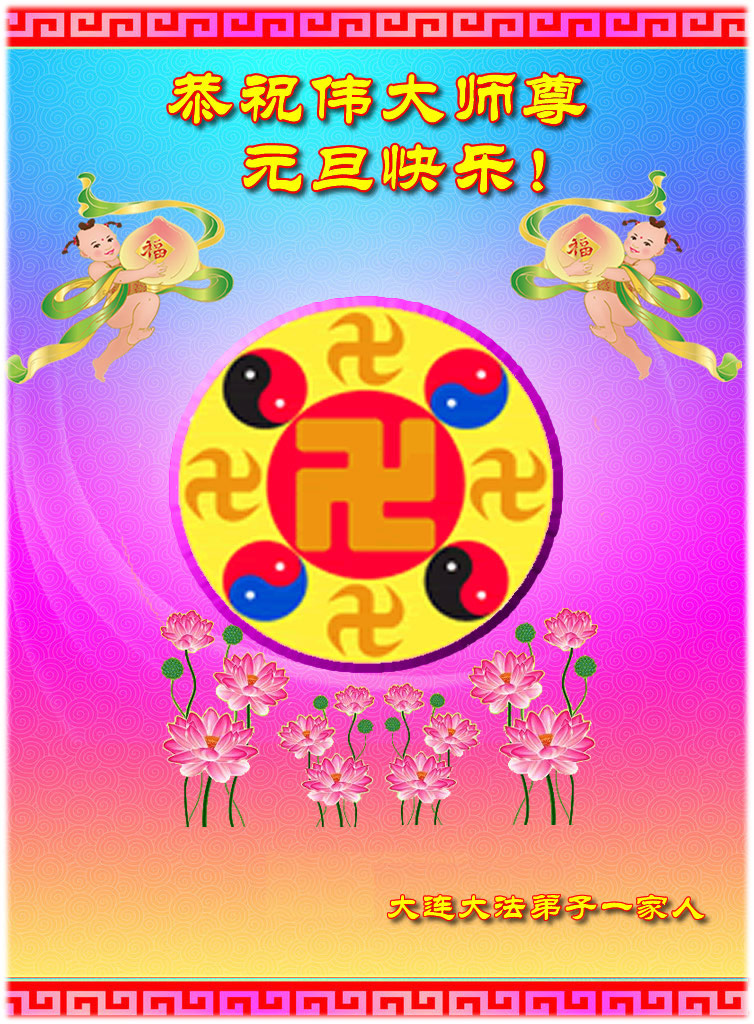 在新的一年里弟子要更加精進、多学法,修好自己,多救人,配得上大法弟子的称号,完成历史的使命与责任。谢谢师尊的慈悲与苦度。 辽宁省大连市瓦房店市大法弟子恭祝师尊元旦快乐!